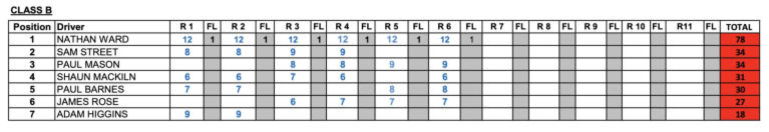 Latest driver standings in for the Castle Combe Racing club FF1600 championship.